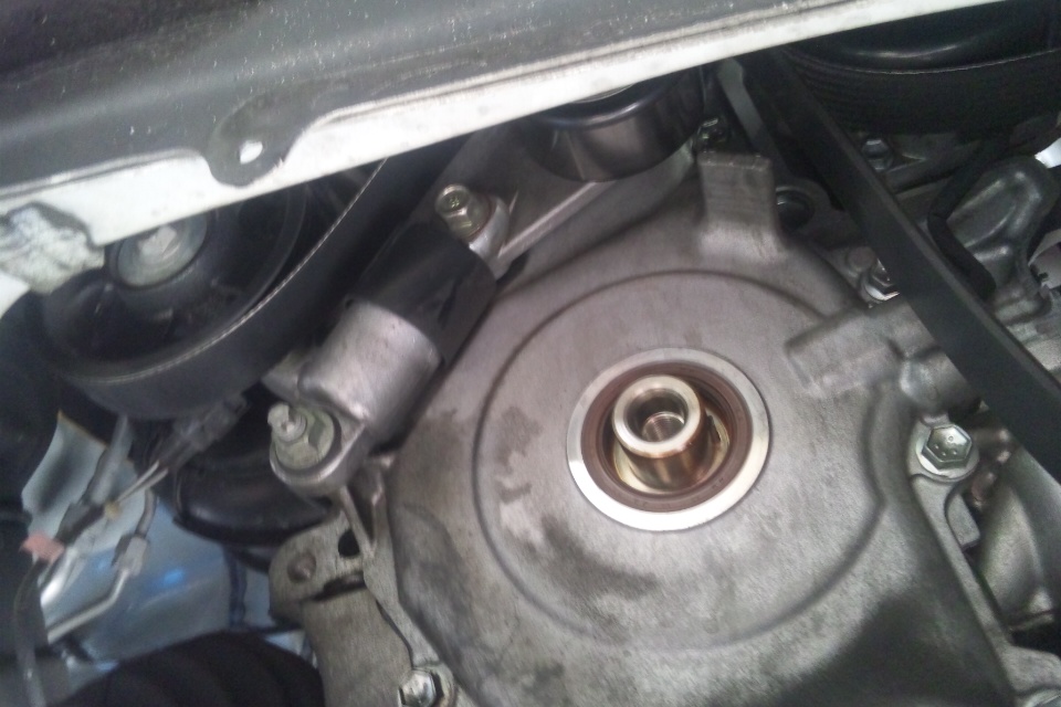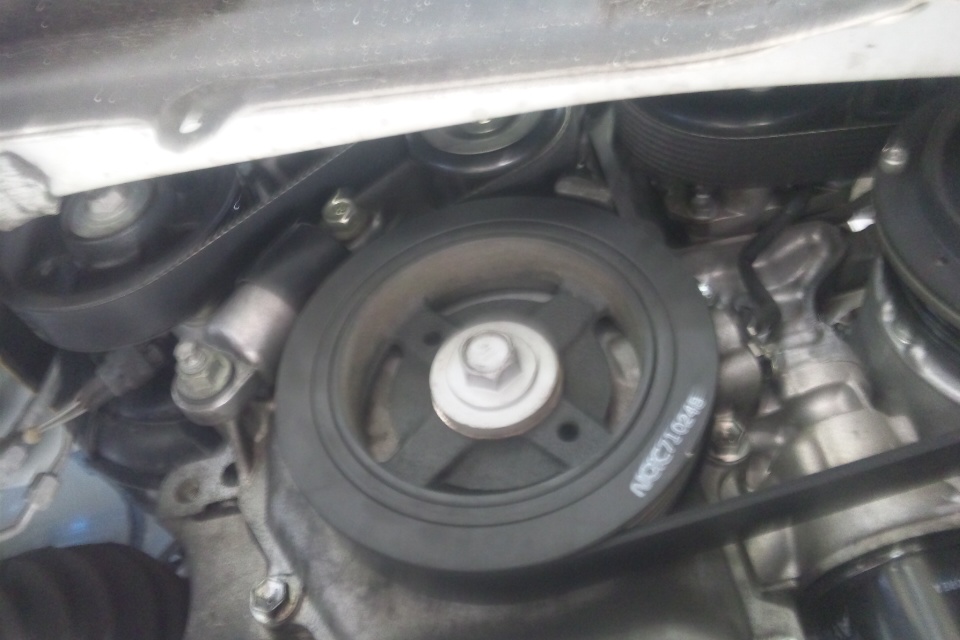 とりはずしはクランクプーリやエンジンマウントをはずして