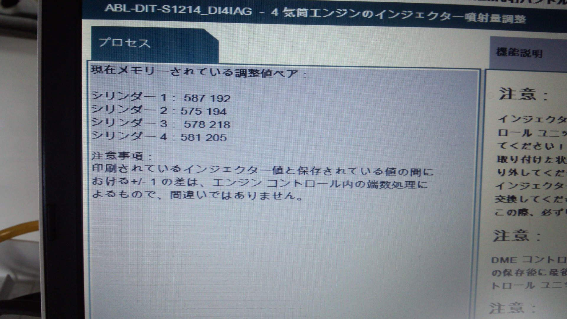 その後診断機にてインジェクターの調整をして完了