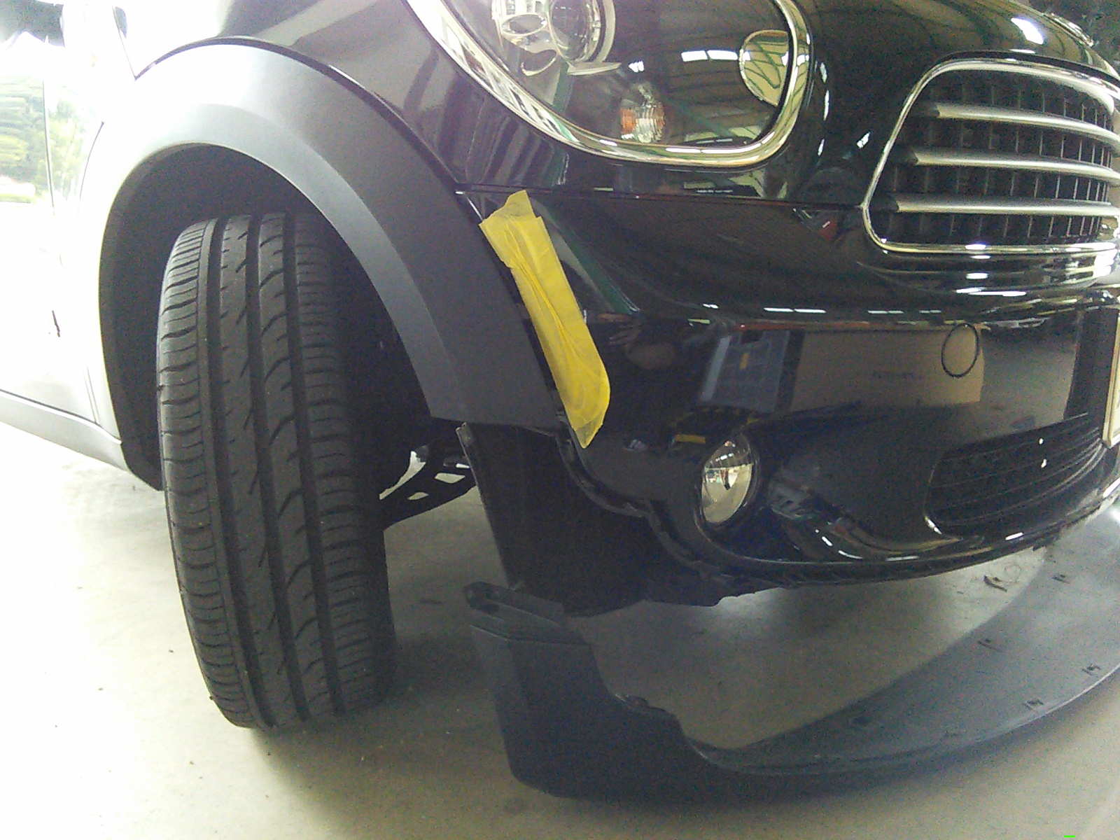 板金作業のほうは、ミニ クロスオーバーのフロントスポイラー交換