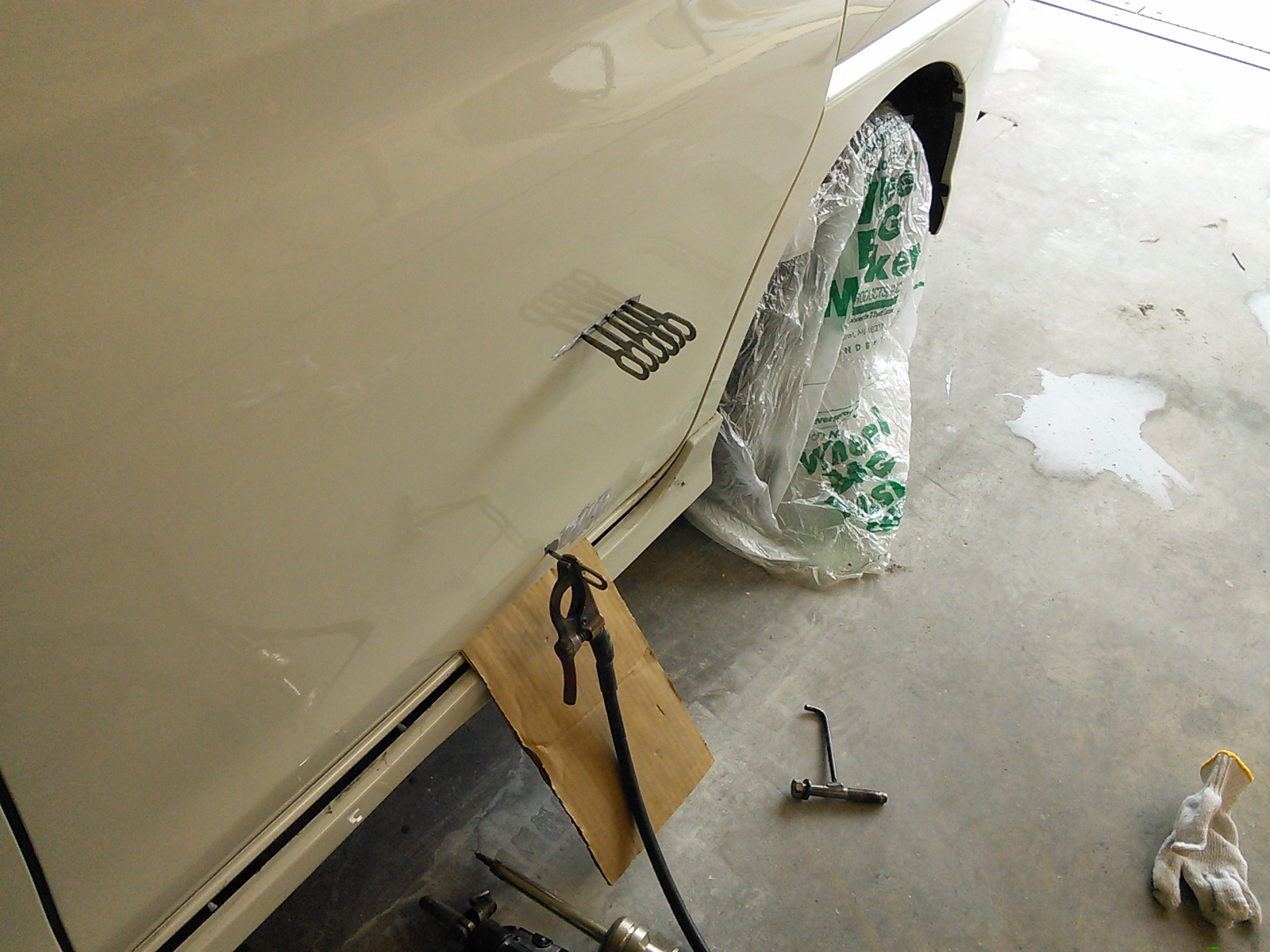 まずは へこみの酷い部分を溶接して周りの歪を消すように