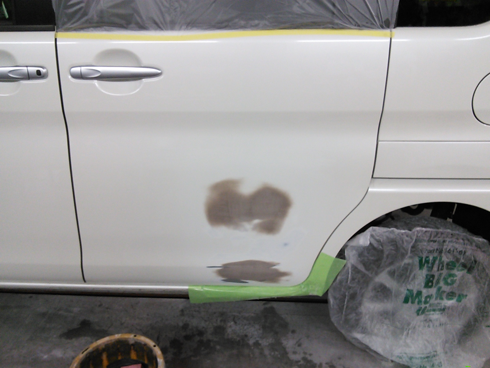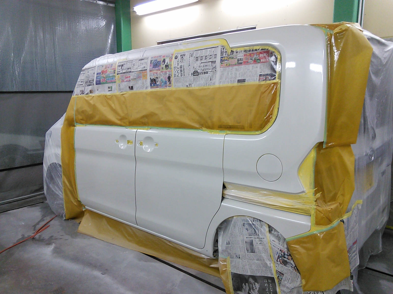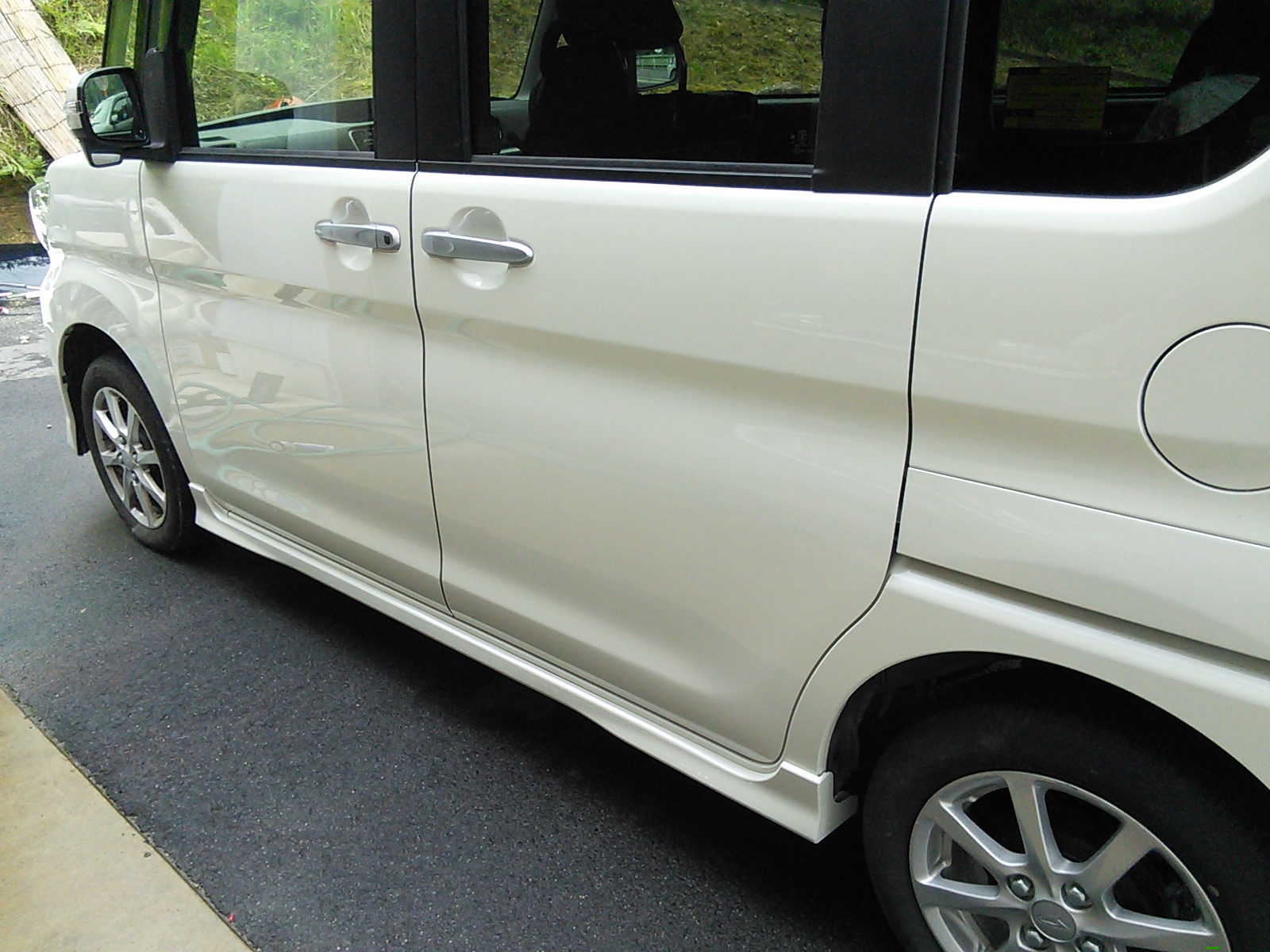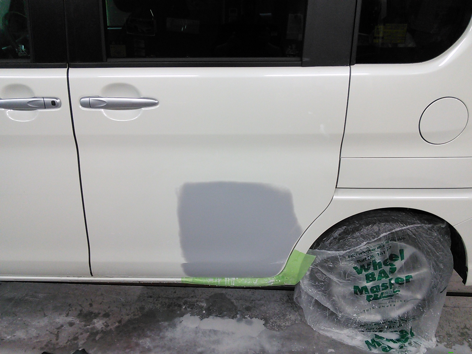 今回は ダイハツ タントのドア、サイドステップの板金塗装を紹介します。