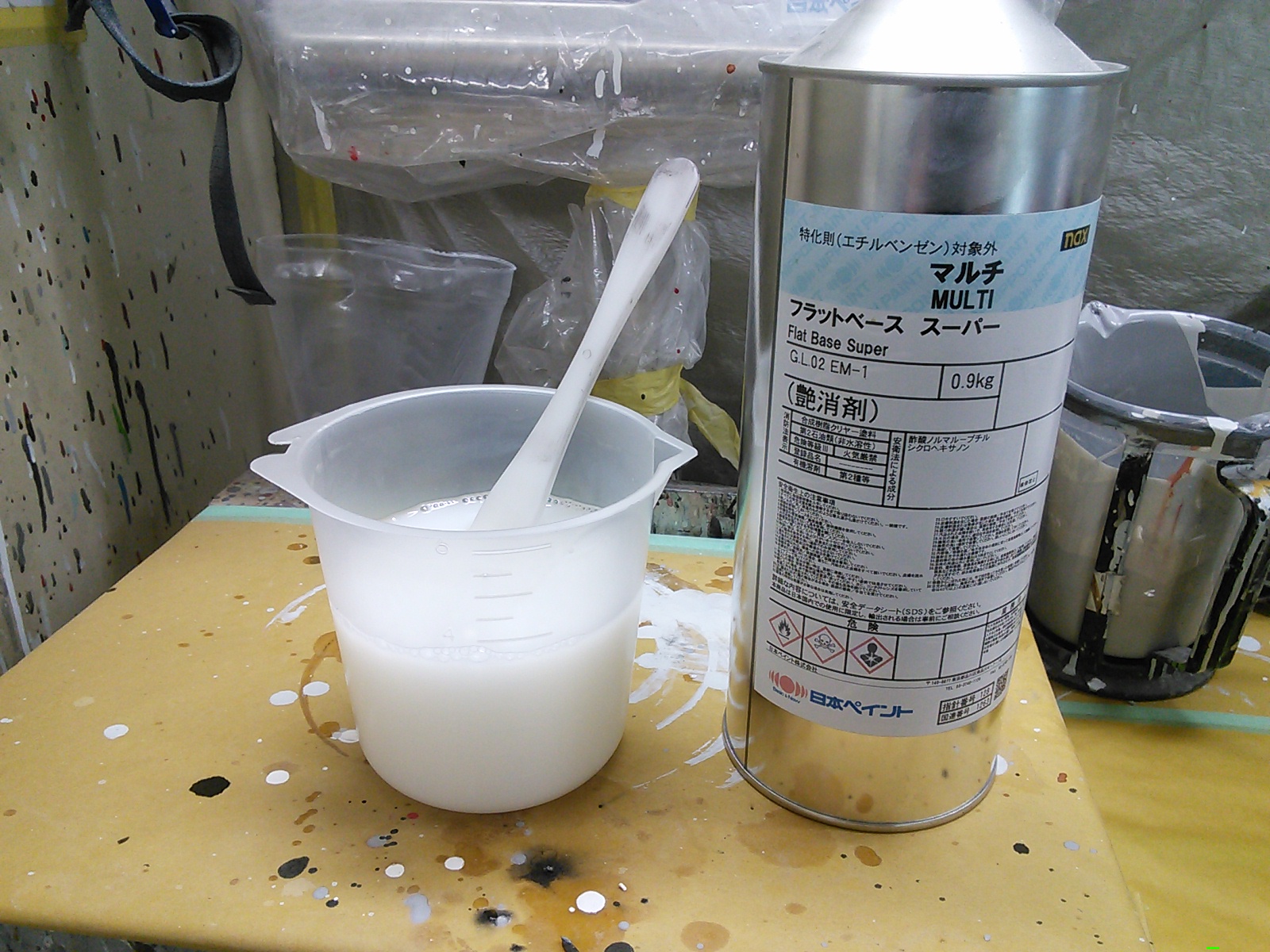 次の工程は塗装ですが色がツートンなのでまずは白色から。
