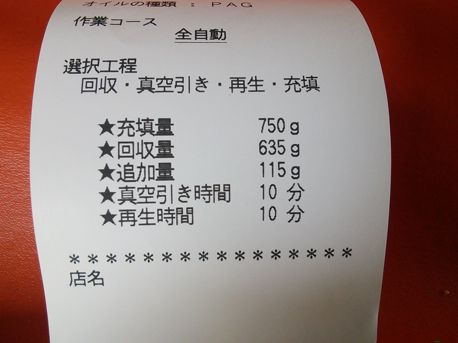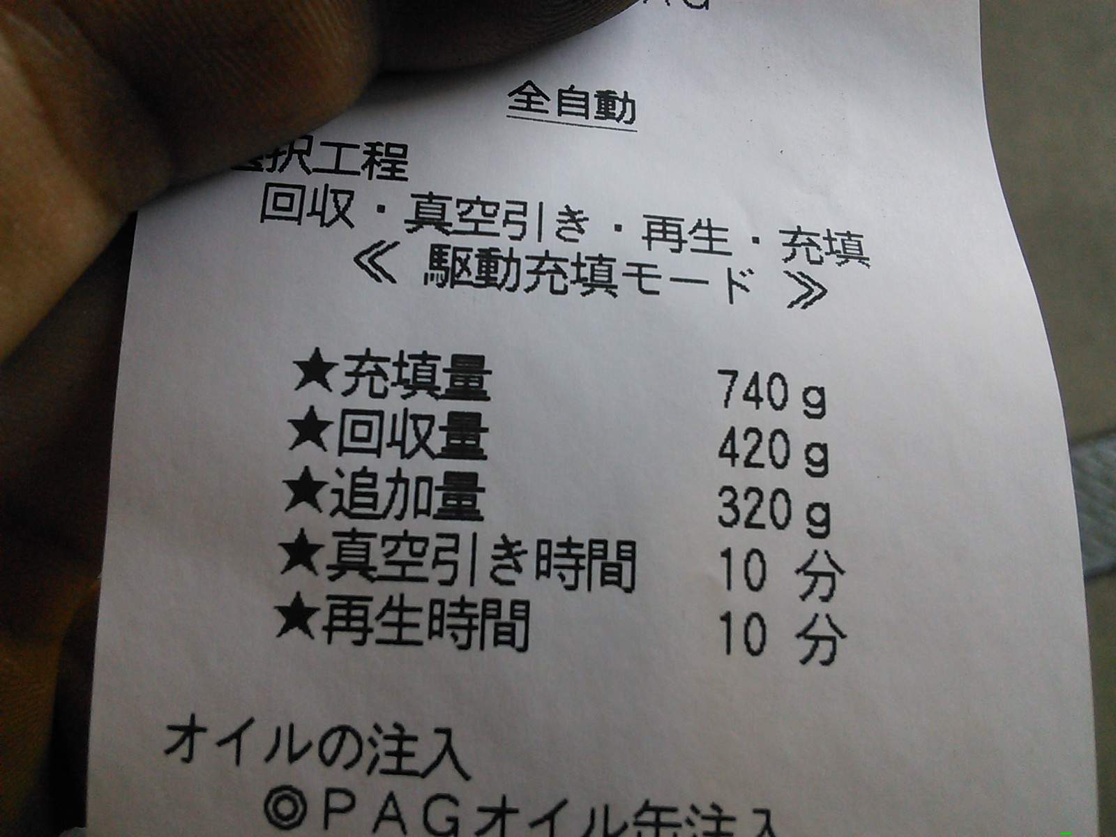 エアコンオイルの補充(WAKOSパワーエアコンプラス)も充てんさせていただきました