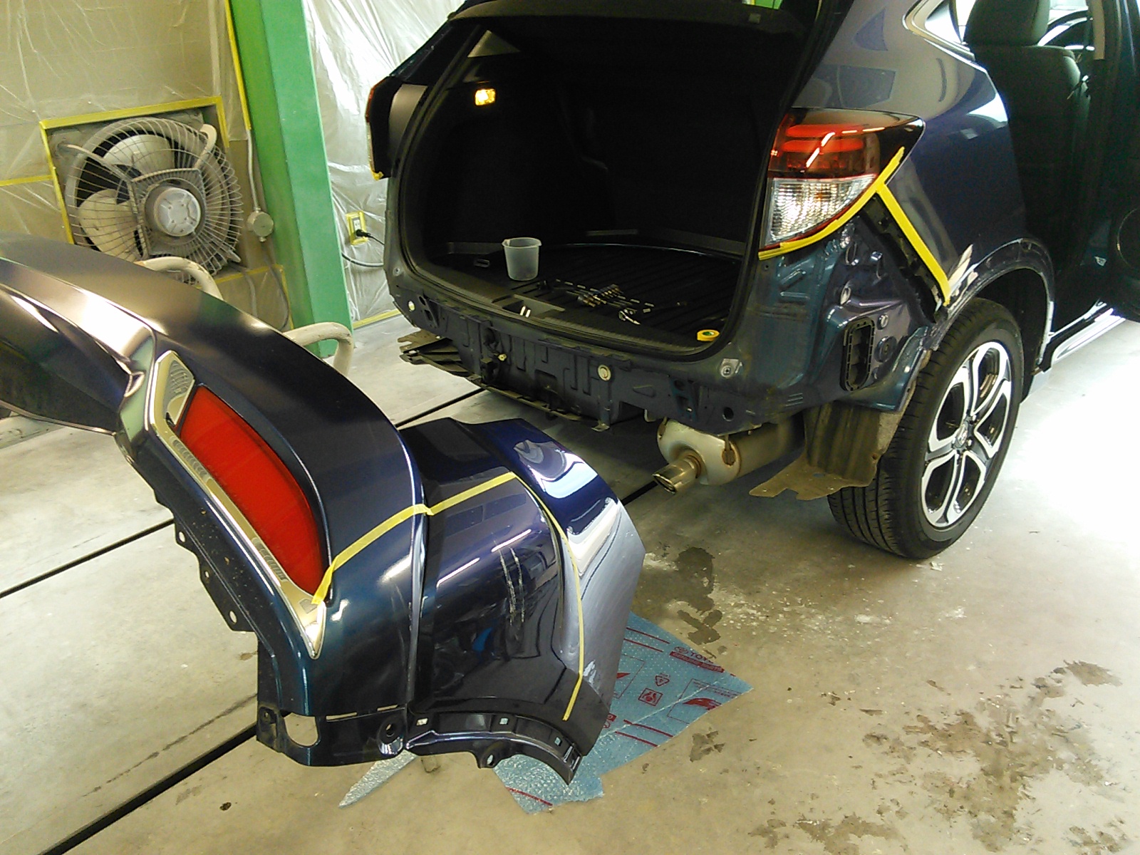 今回は ホンダ ヴェゼルのリアバンパーの修理を紹介します。