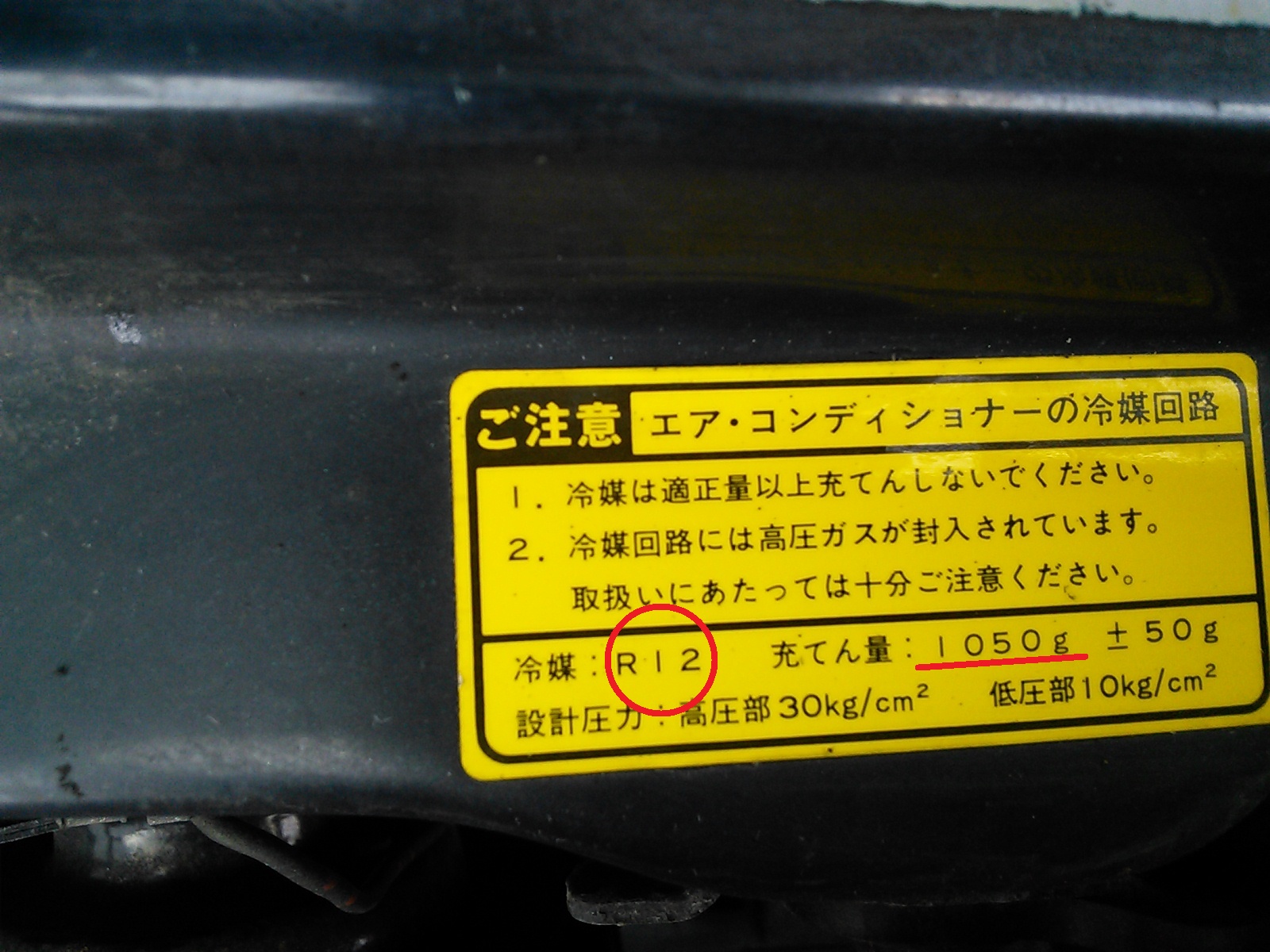 R12ガスは平成6年ぐらいまでの車両に注入されていますが