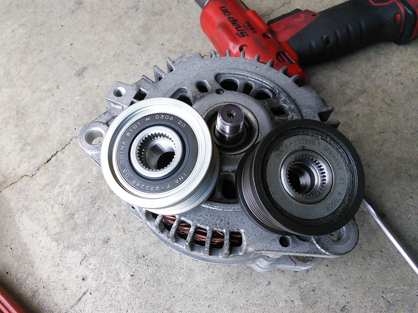 原因はオルタネーターワンウェイプーリーの破損