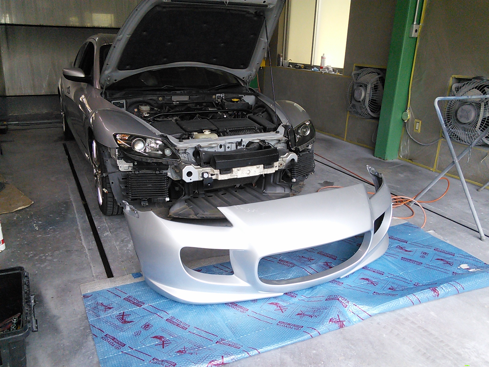 マツダ RX-8 エアロバンパー取り付け 加工 塗装  豊田市 板金塗装