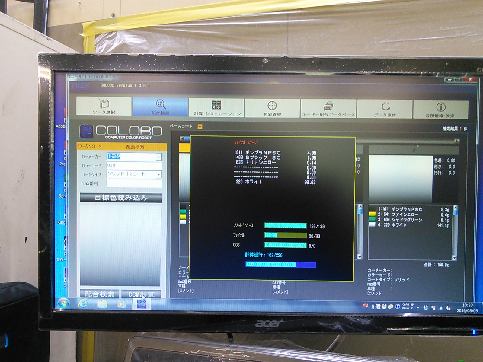 撮影後パソコンにつないでデータ化して調色します。