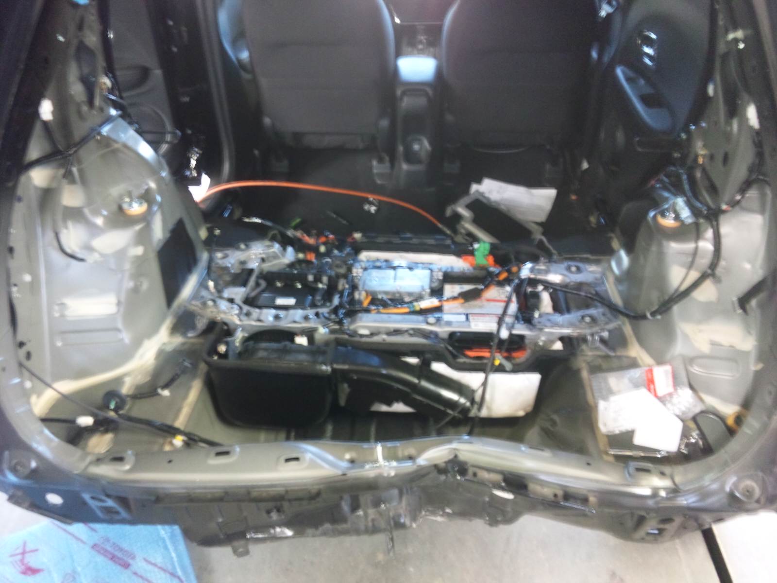 ハイブリッドシステムのバッテリーを外していきます。