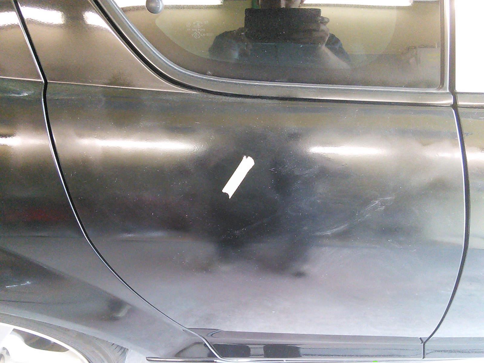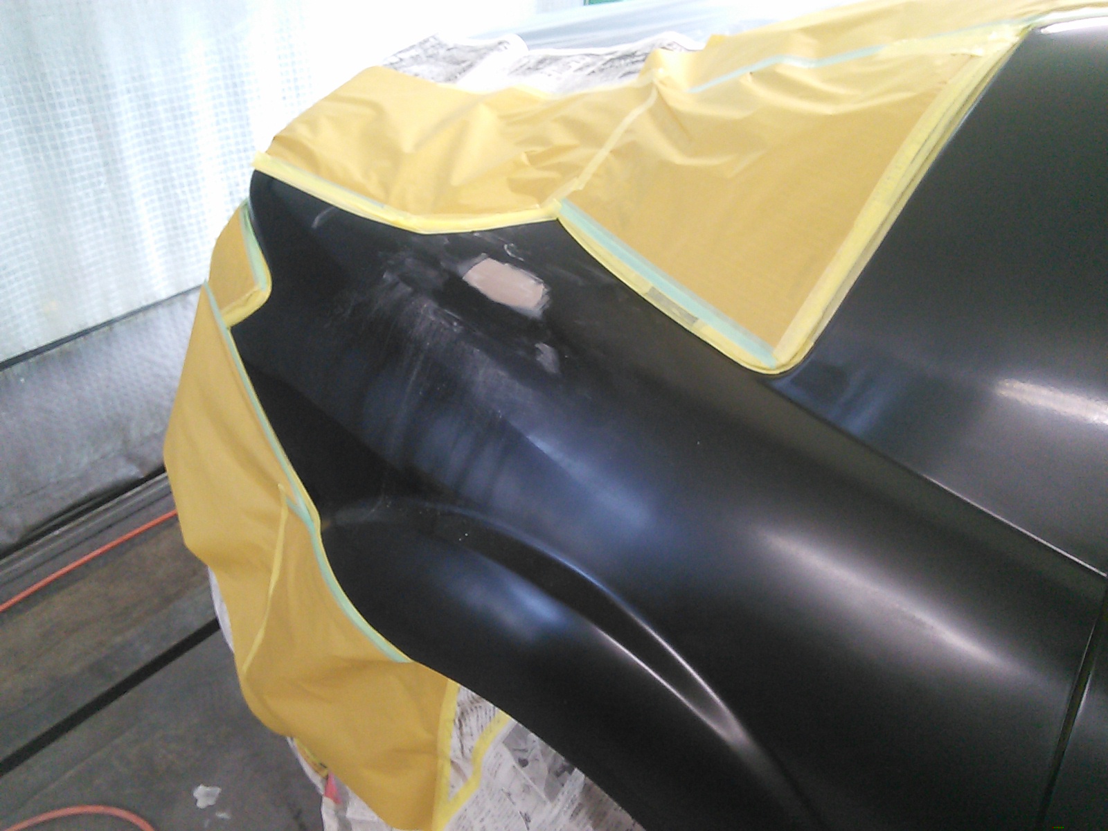 塗装開始直後にトラブル発生。へこみを見落としてました(-_-;)。