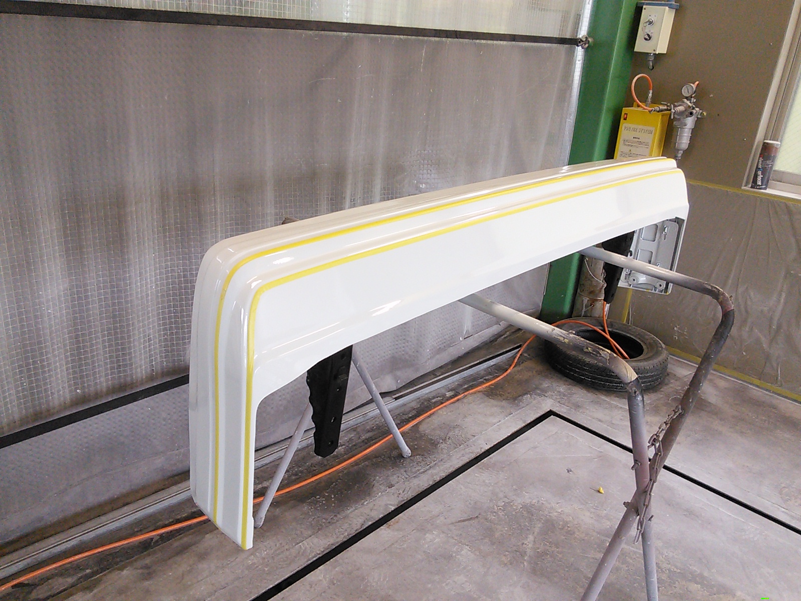バンパーはモールラインもあるのでラインを決めてマスキング。
