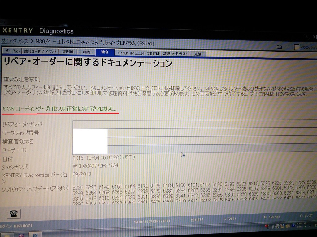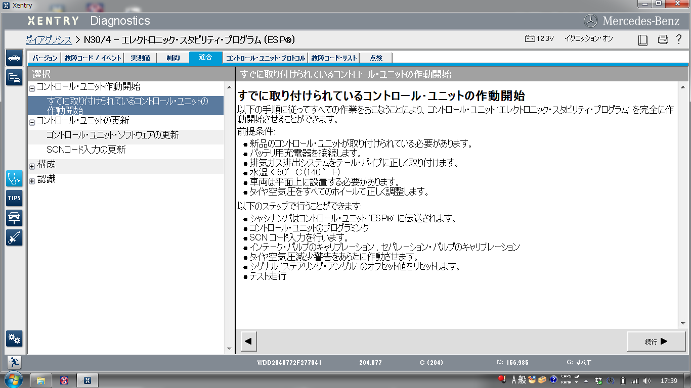ベンツ純正機にてコーディング