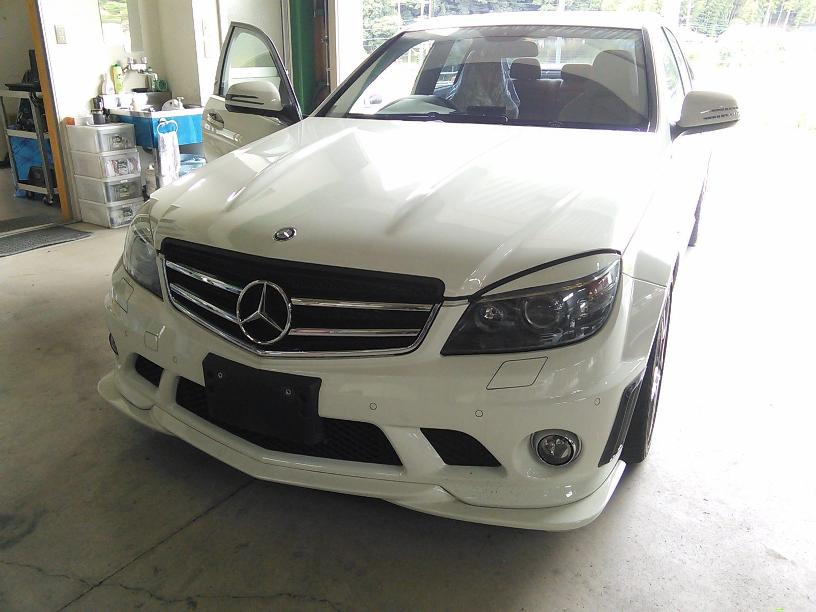 C63 AMG パワステ効かない ESPランプ点灯ということで業者様より入庫